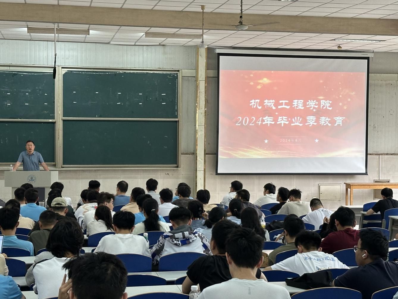 于6月7日在星硕举办“念济大芳华,向美好未来”2024届毕业生年级大会,学院党委副书记孙成政、2020级辅导员薛浩以及全体毕业生参加。
