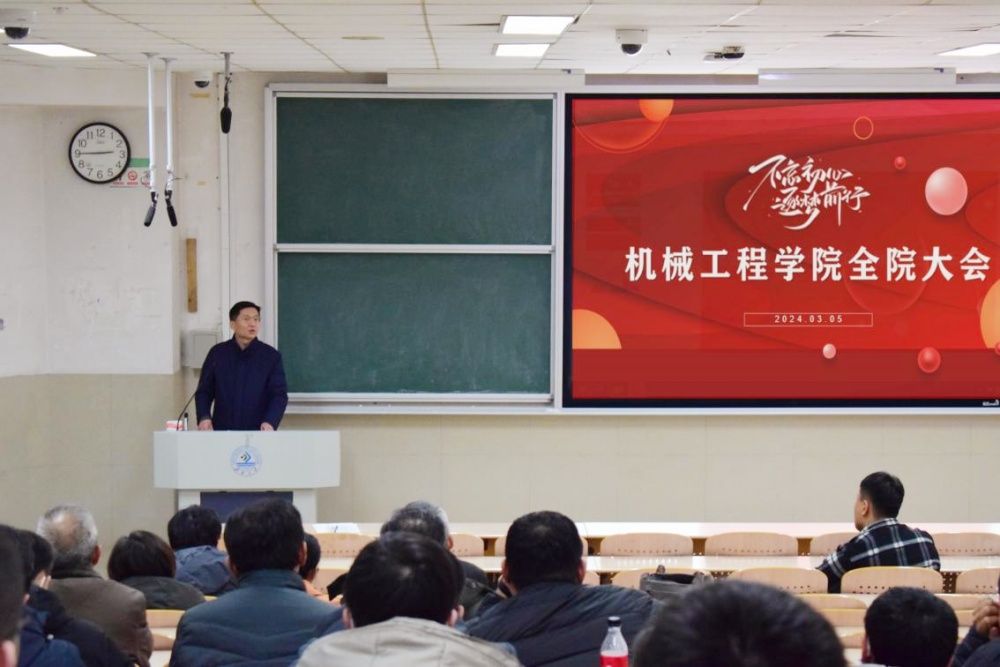 程涛首先传达了学校党委书记刘春华在学校四届四次全委会扩大会议上所作题为《锚定目标抓落实 聚焦重点求突破 努力开创高水平大学建设新局面》的报告精神,详细解读了刘春华从“七个聚焦聚力”对学校2024年的重点工作的部署并提出,一要整合资源促发展,锚定目标,狠抓落实,聚焦工作重点,力求取得新的重大突破;二要以教风带动学风,做到“以德施教做表率”,为学院建设良好的育人环境和人才培养质量的提升提供有力保障;三要强师德、正师风,树立“躬耕教坛、强国有我”的志向和抱负,把师德师风作为评价教师队伍素质的第一标准,持续涵养好教育的这片净土。